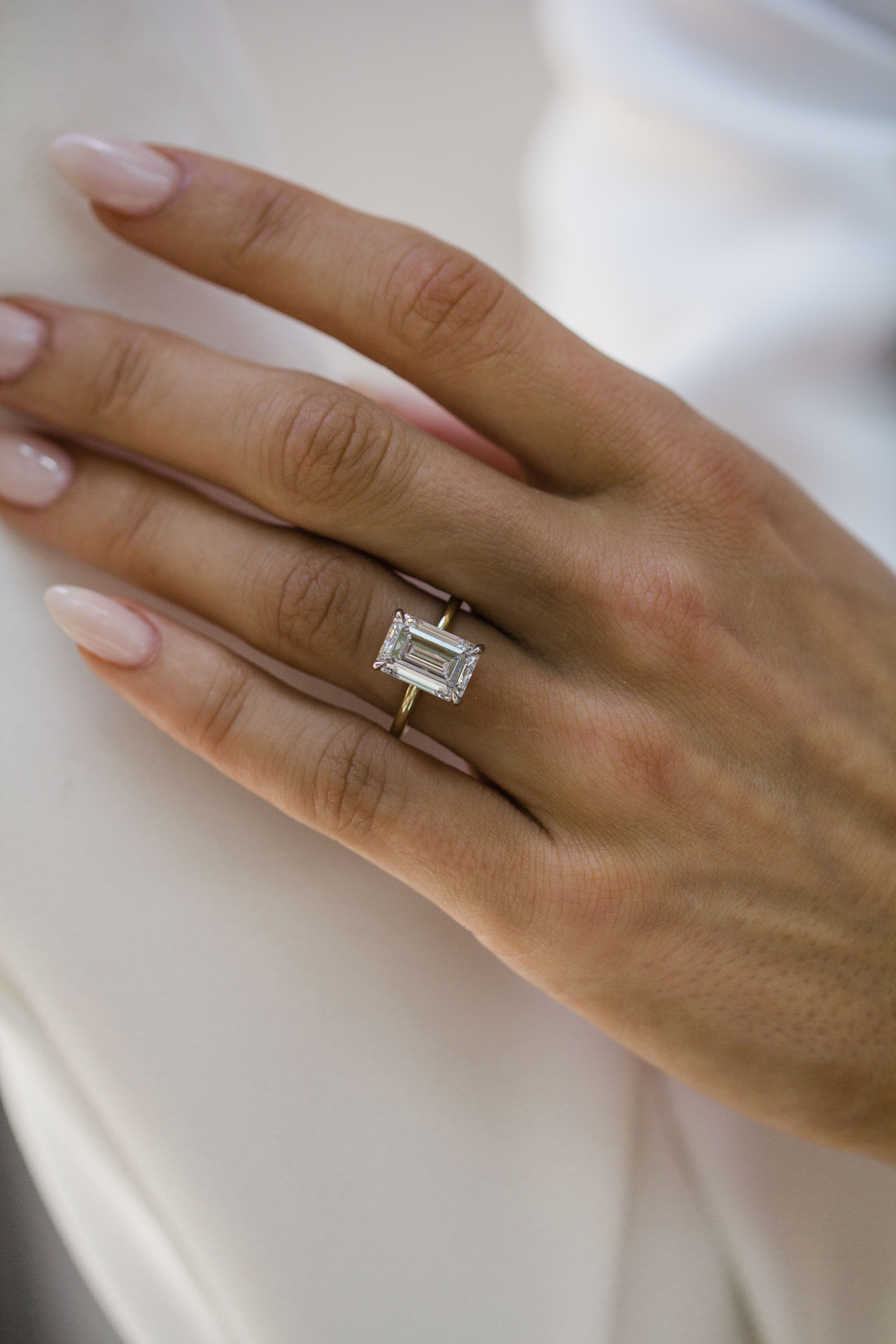 Emerald solitaires have been taking over our DMs — and it’s easy to see why. This 4.1 carat (E, VS1) lab diamond emerald is showcased in our Harper setting, complete with an invisible halo for a subtle hint of pavé sparkle. Crafted in two-tone 14k white and yellow gold, it gives that perfect “floating” illusion — timeless, yet strikingly modern.