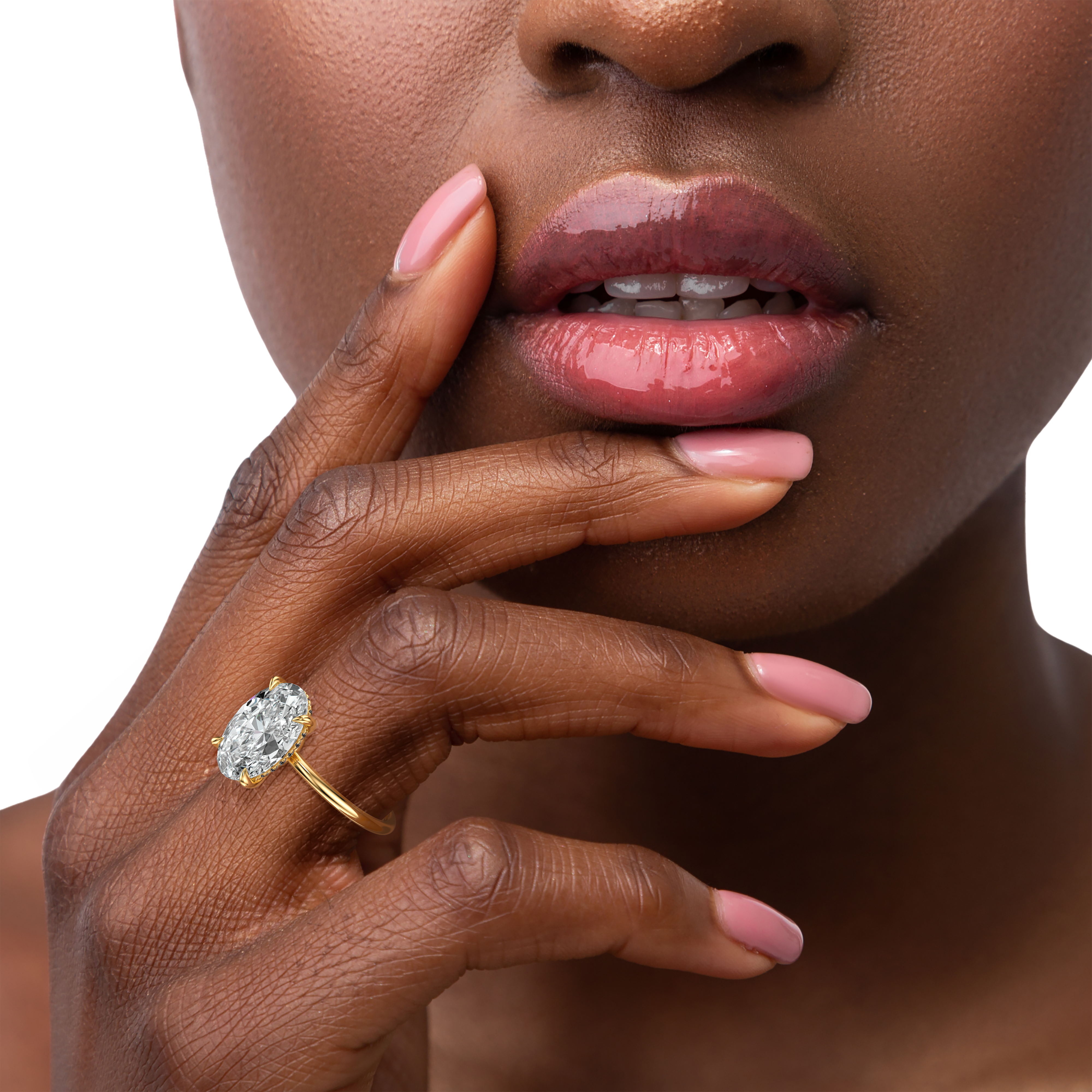 The Founder Recommended version of our Harper Ring is our dantiest solitaire band option paired with our two most popular upgrades - an invisible halo and a donut. Harper's 1.5mm band width is a crowd favorite for those who prefer a quieter, more streamlined setting that allows the center stone to fully have its moment. Please note that a donut will set the stone so low that a traditional wedding band won't be able to stack perfectly flush. Want the best of both worlds with a flush stack and a donut? Contact us about our open bands for a custom fit at hello@createdrings.com.