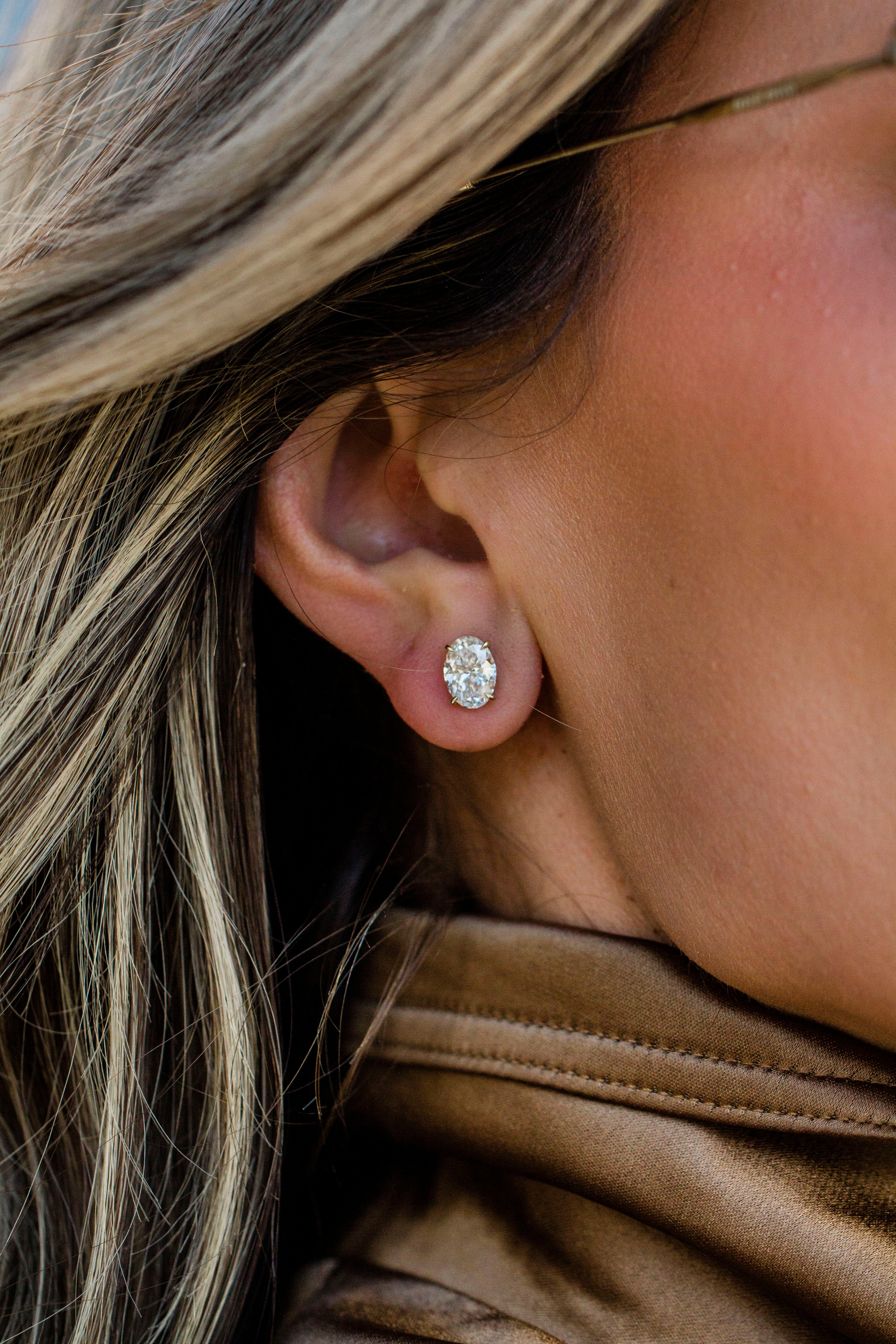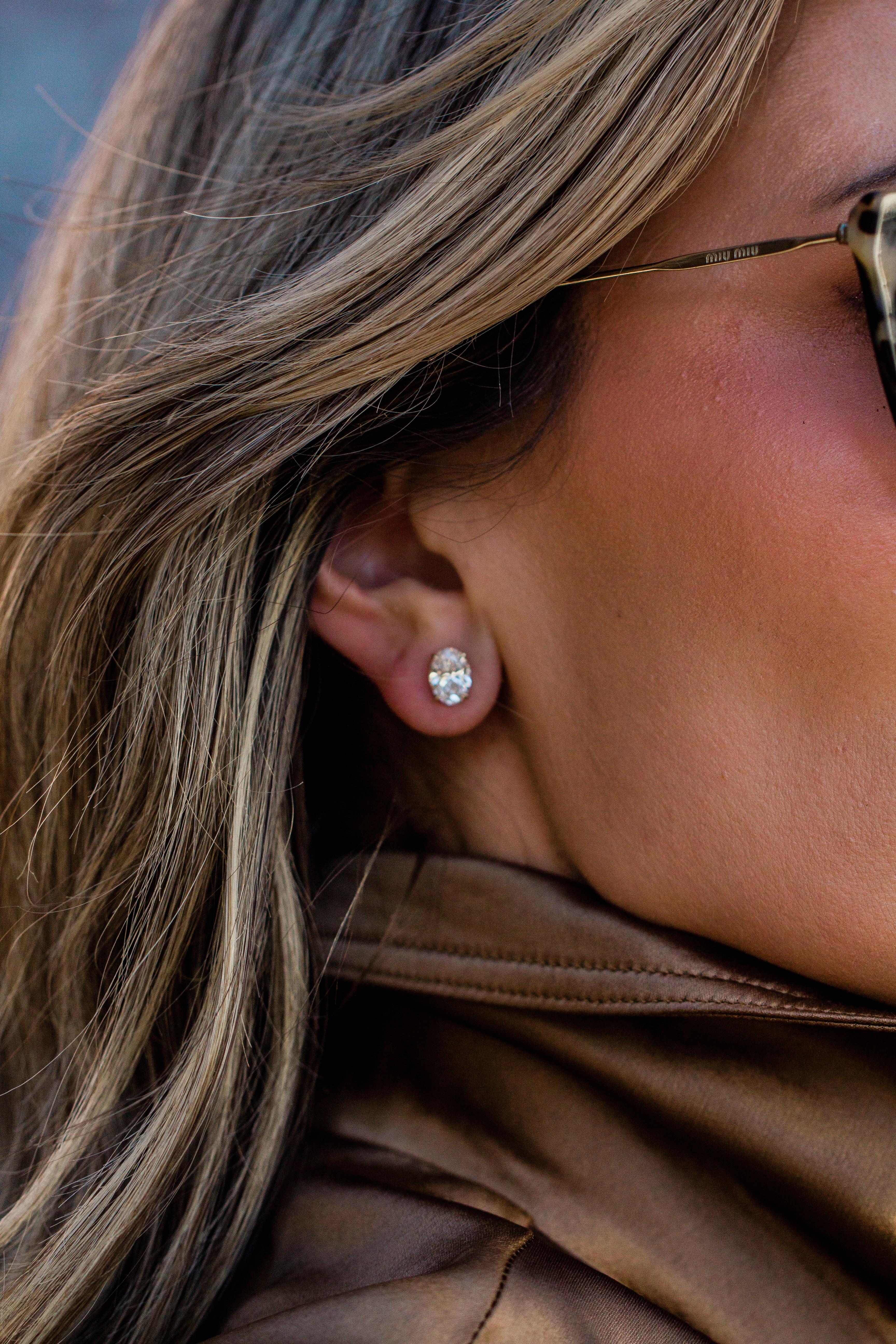Although we're best known for our custom lab diamond rings, we also specialize in crafting lab diamond studs. This statement oval pair totals 2.94 carats and is set with push backs. A low-profile donut setting ensures the diamonds sit as close to the ear as possible, combining timeless elegance with everyday comfort.