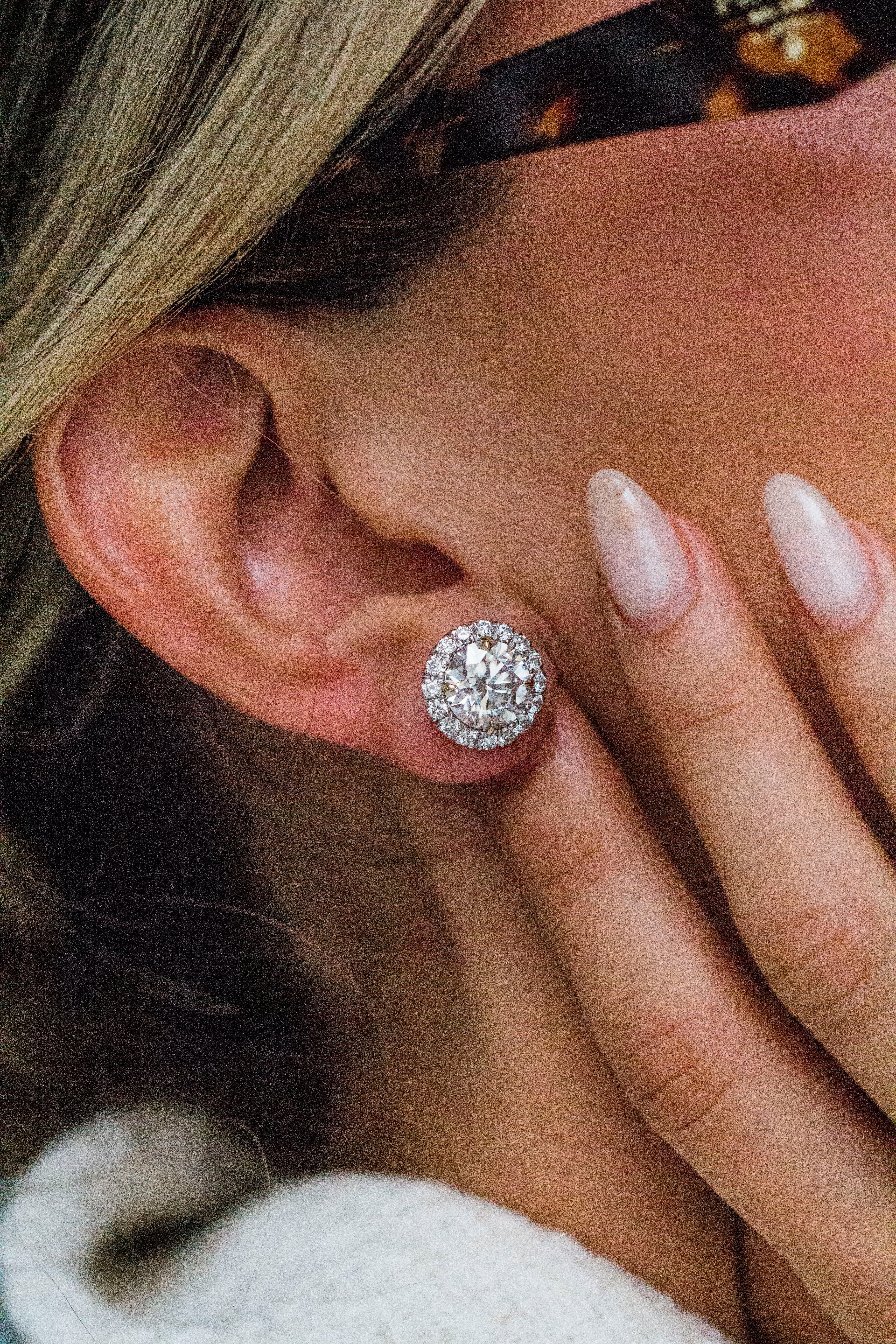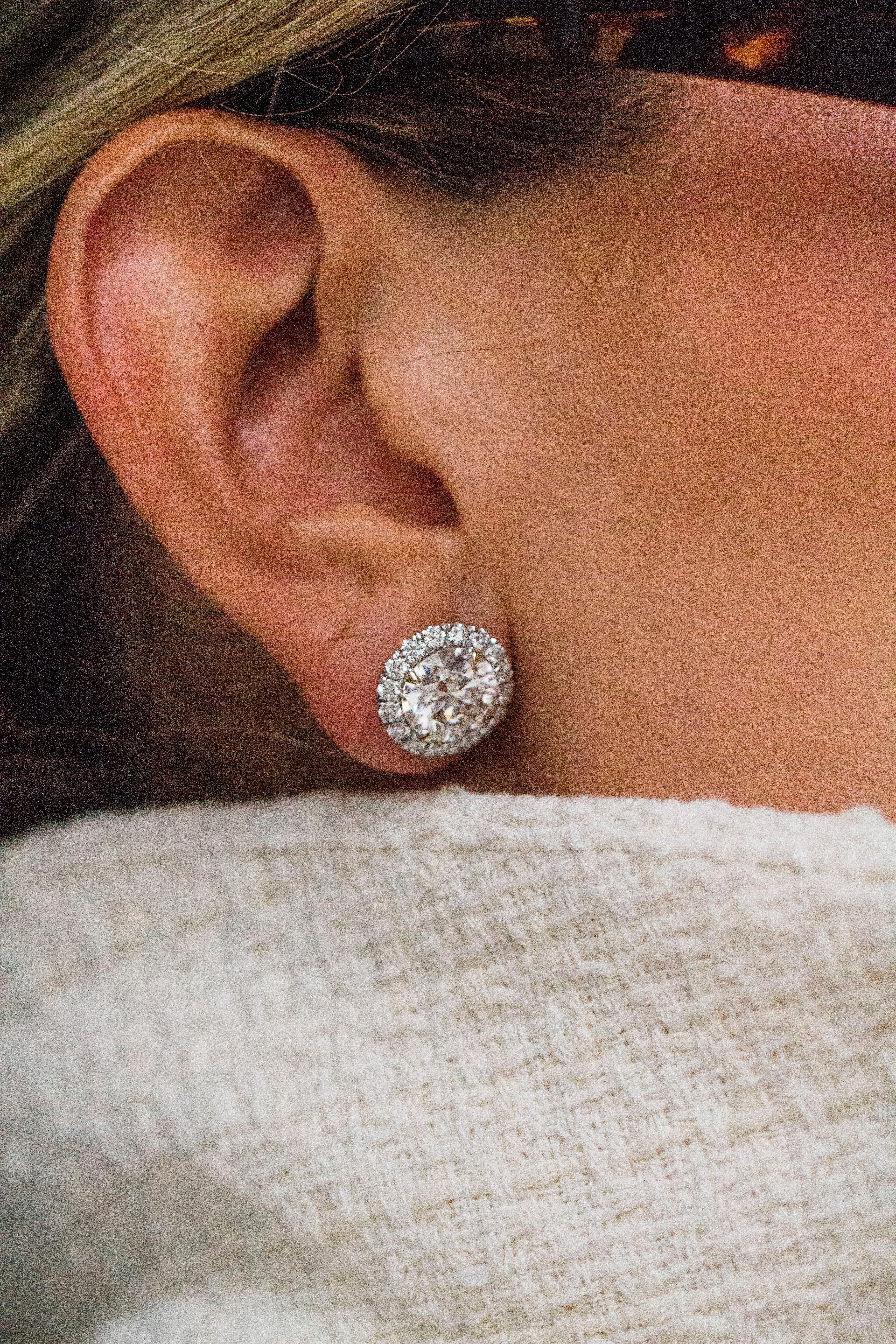 While we’re best known for our custom lab diamond rings, we also specialize in crafting lab diamond studs. Introducing these 6.51 CTW fancy pink round Pearla studs, secured with push backs. The low-profile donut setting ensures the diamonds sit as close to the ear as possible, combining timeless elegance with everyday comfort. Each stone is framed by a 2mm halo, designed to deliver serious sparkle and maximize value.