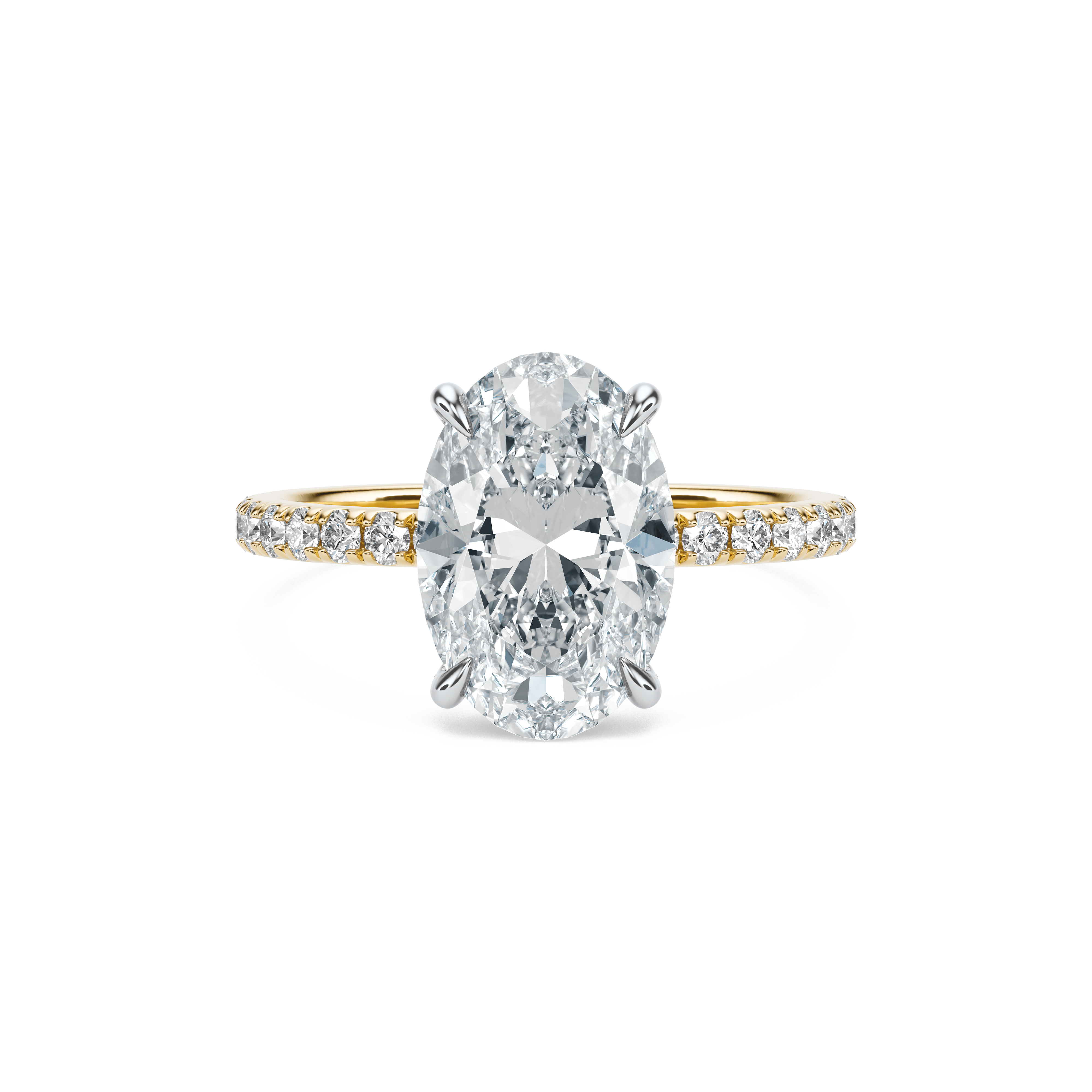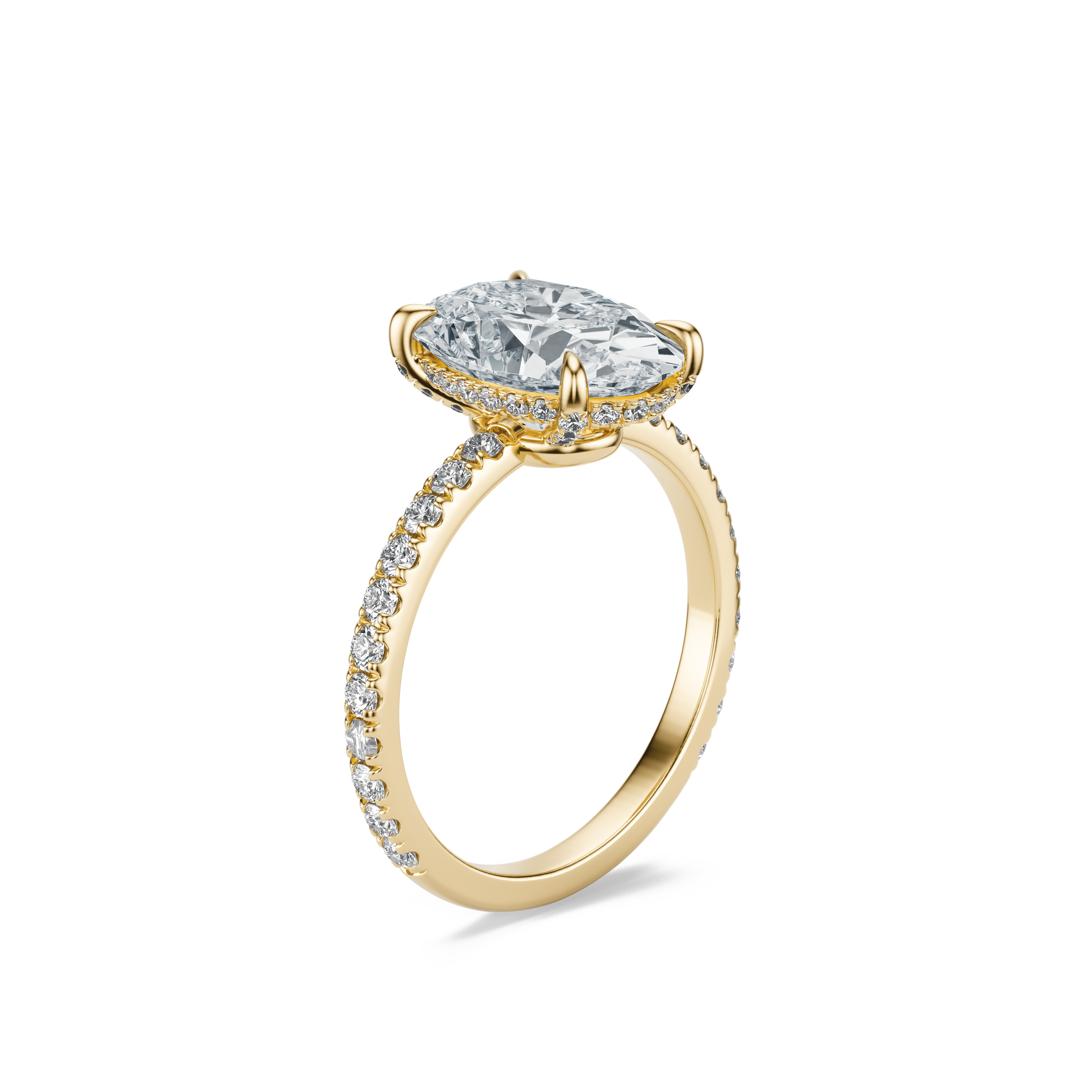 One of our most popular and versatile pavé settings, Founder Recommended Serena Ring has a 1.8mm U-Prong Pavé band that is still dainty yet durable. It comes with a pavé underside, invisible halo, and donut for added design details and durability. Please note that a donut will set the stone so low that a traditional wedding band won't be able to stack perfectly flush. Want the best of both worlds with a flush stack and a donut? Contact us about our open bands for a custom fit at hello@createdrings.com.